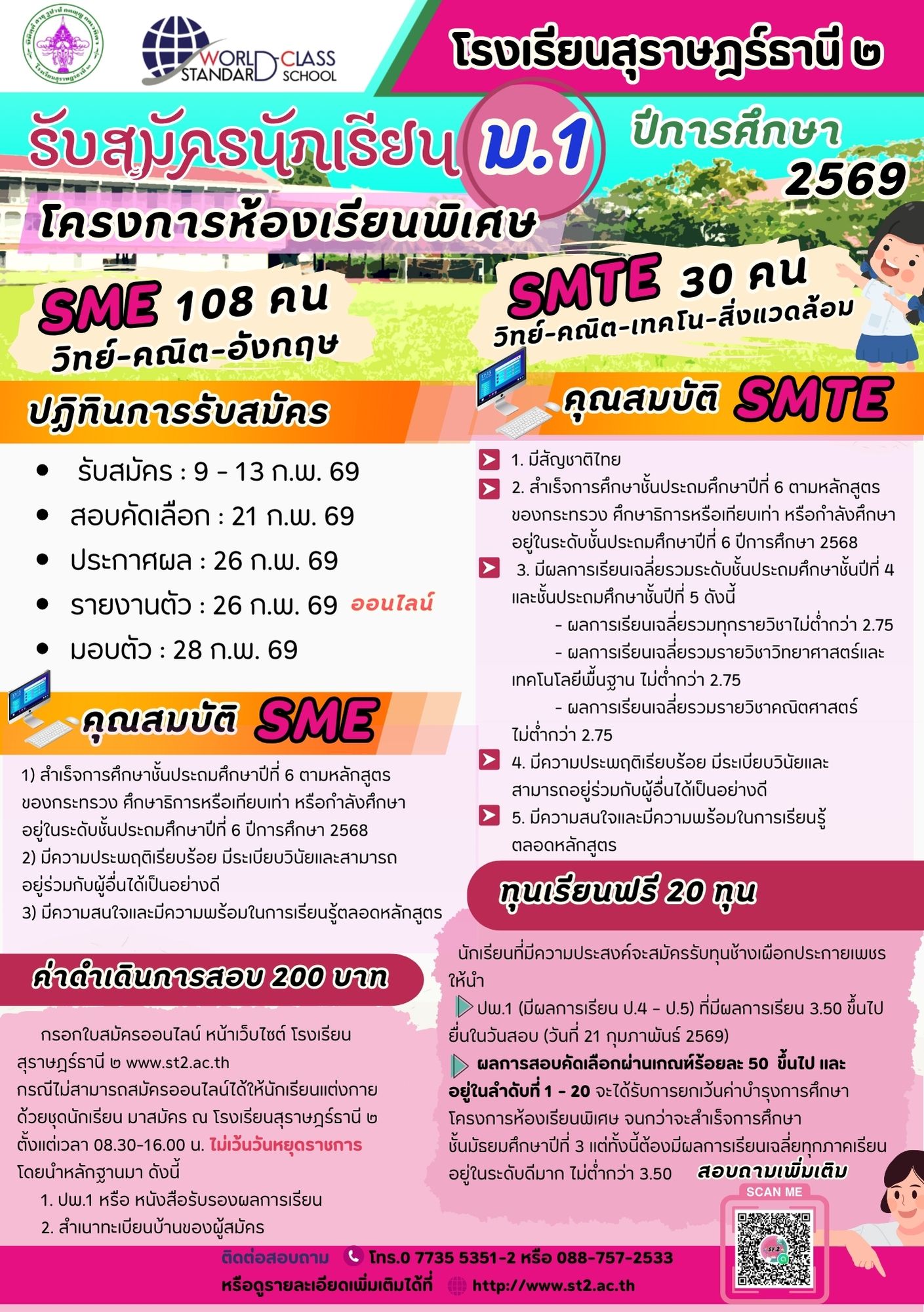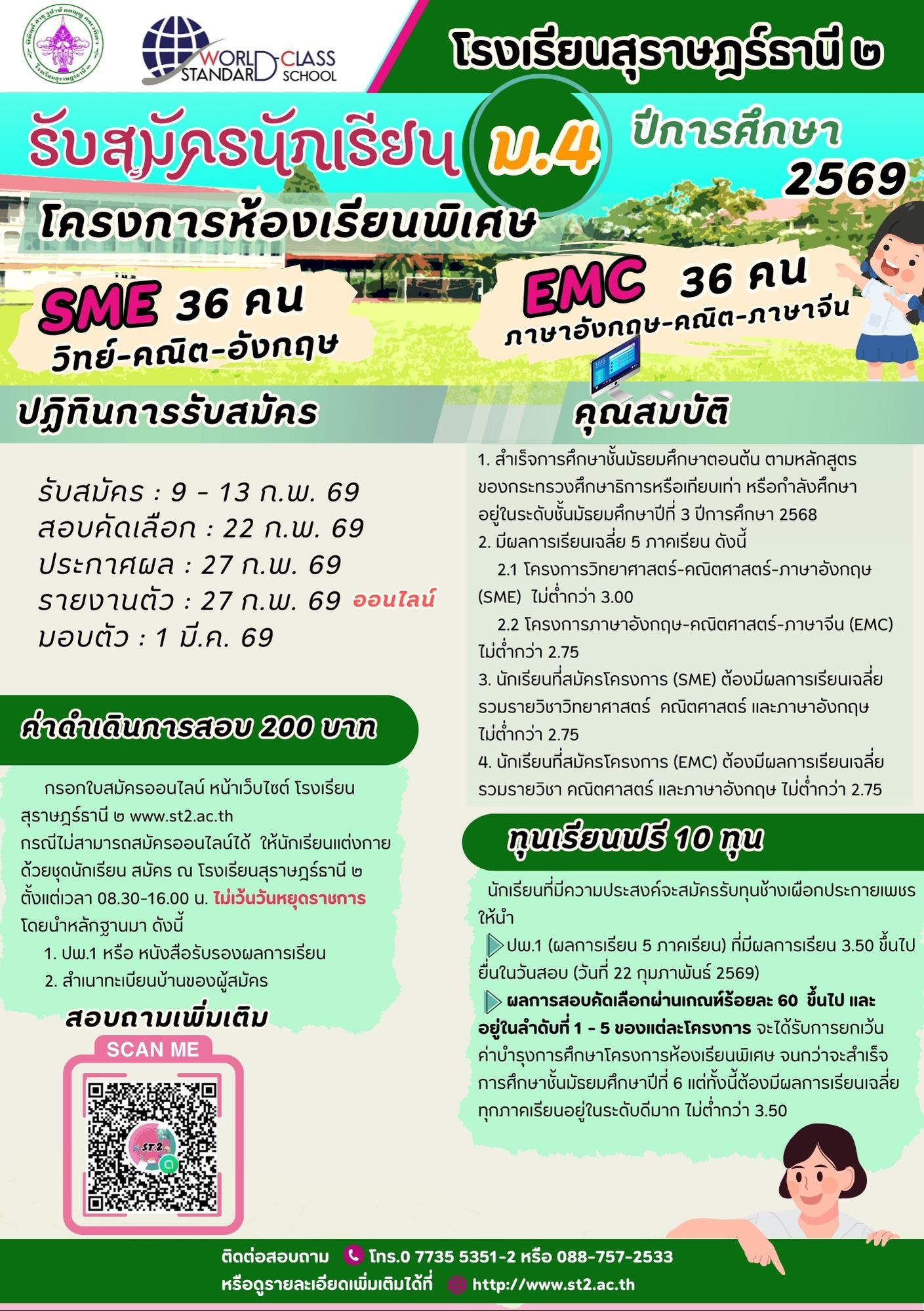 ☎️ 0 7735 5351-2 หรือ 088-757-2533 กลุ่มบริหารวิชาการ โรงเรียนสุราษฎร์ธานี ๒